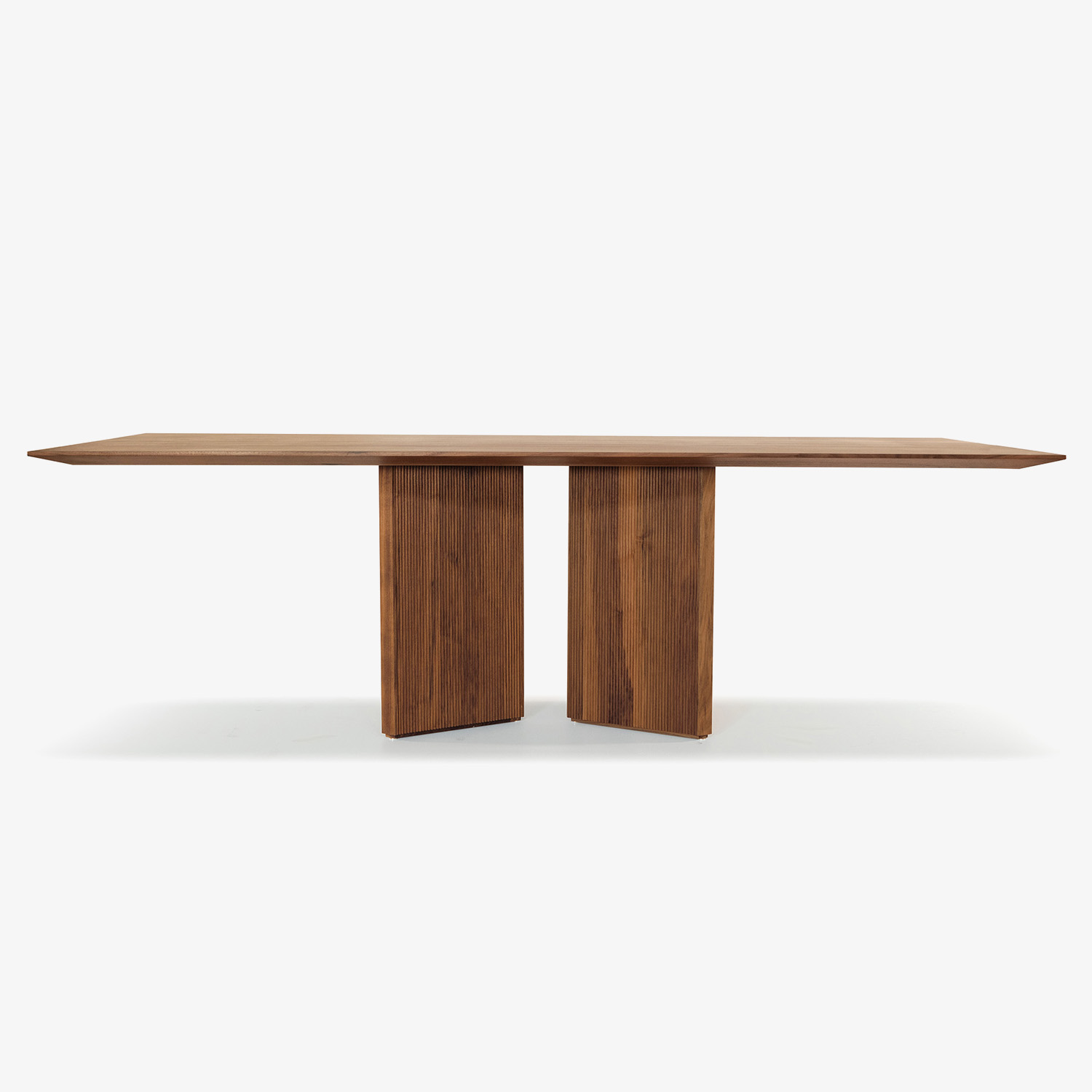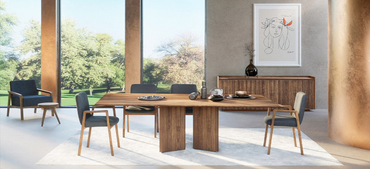 La REVO Collection si compone di elementi che si inseriscono armoniosamente in ogni ambiente della casa. Il tavolo si presenta allo stesso tempo solido e leggero, con lavorazioni che ne valorizzano il carattere materico. Le credenze sono impreziosite da incastri a coda di rondine e maniglie fresate passanti, dettagli che ne esaltano l’artigianalità e l’essenzialità del design. A completare la collezione anche arredi dedicati alla zona notte, il letto, il comò e il comodino, sono caratterizzati da lavorazioni tridimensionali e una purezza formale che esprime appieno la forza espressiva del legno massello.