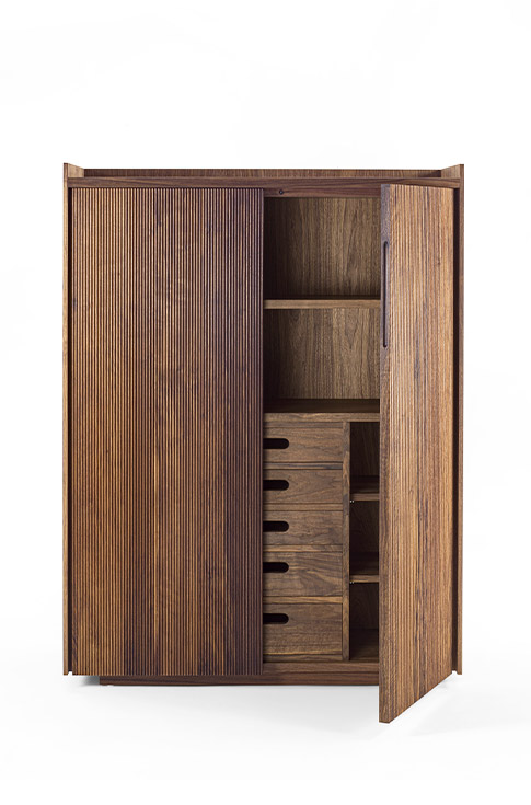 La sfida principale della progettazione della REVO Collection è stata trasformare la purezza del legno in forme che affascinano ed emozionano. Disegnare un’intera collezione esclusivamente con questo materiale, in collaborazione con Maurizio Riva, ha richiesto una ricerca meticolosa dell’equilibrio perfetto tra volumi, proporzioni e dettagli artigianali. Il risultato? Mobili che coniugano funzionalità ed estetica, offrendo un’esperienza tattile e visiva di grande impatto.