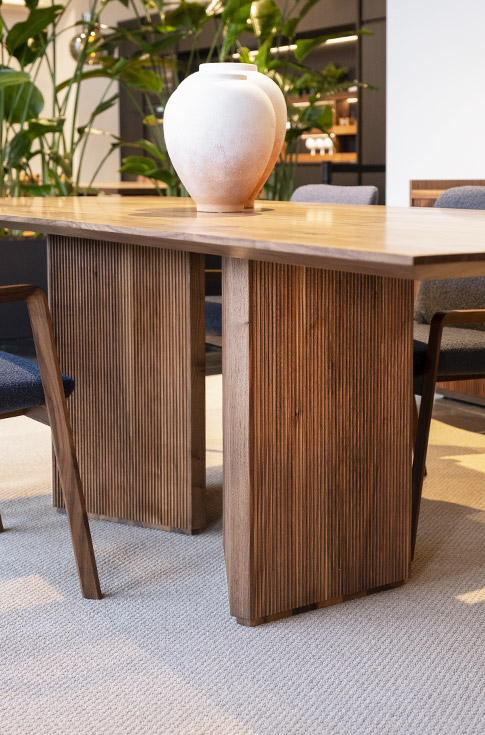 La REVO Collection è molto più di una collezione di arredi: è una celebrazione della materia e del saper fare. La collaborazione con Riva1920 si basa su una solida sinergia, alimentata dal confronto costante e dalla passione condivisa per la qualità e la sostenibilità. Ogni pezzo racconta una storia di tradizione e innovazione, trasformando il legno in un’icona di design senza tempo.