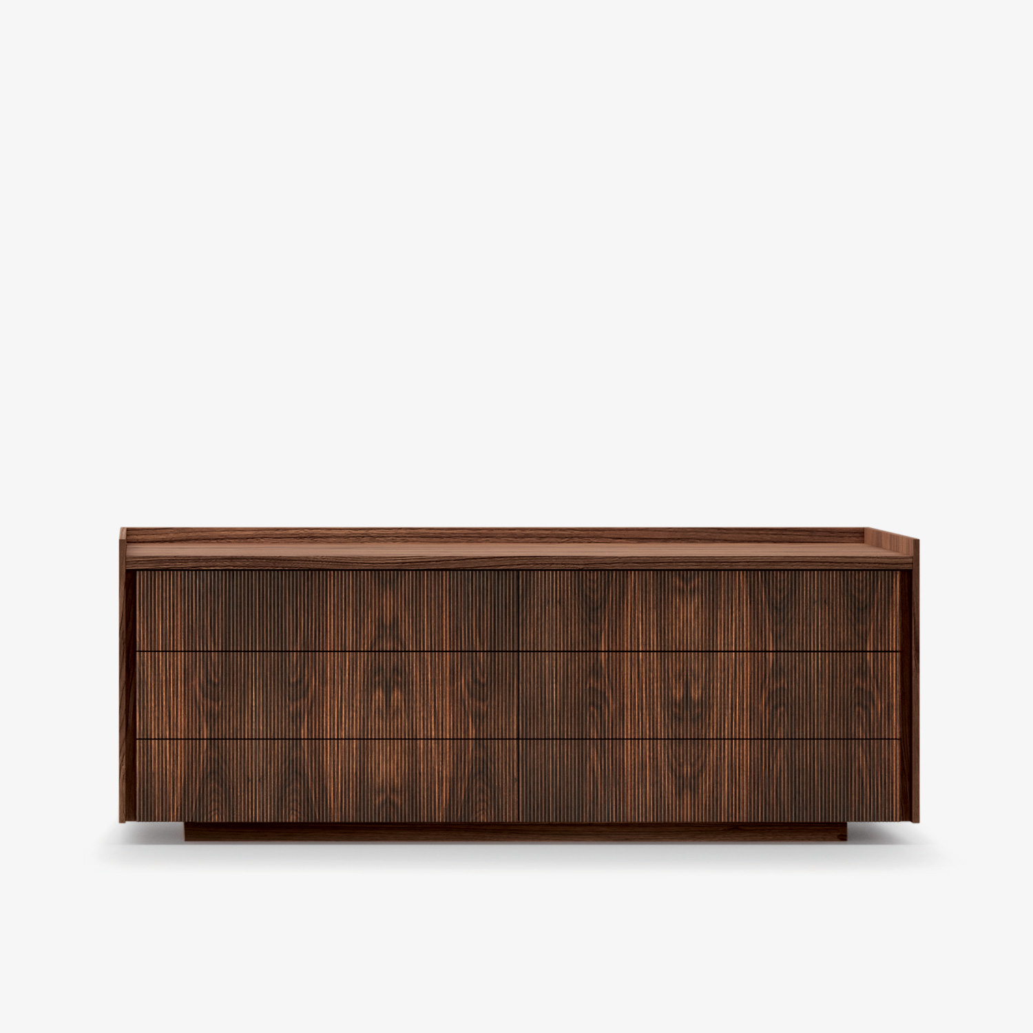 Nella REVO Collection ogni elemento si sviluppa intorno a una struttura che armonizza materiali e dettagli. In questa visione, la lavorazione Fresart aggiunge profondità e dinamismo alle superfici, creando un effetto geometrico moderno ed elegante.