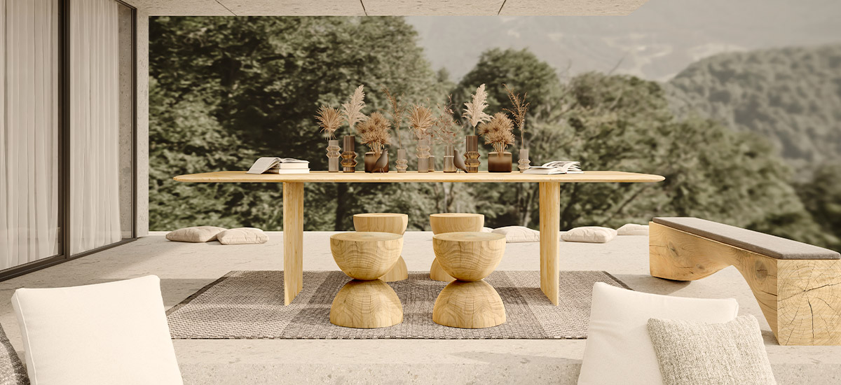 Ogni elemento della collezione è il risultato di un’eccellente lavorazione artigianale, che dona leggerezza e sinuosità alle forme. Il legno, modellato con cura, diventa protagonista di uno stile raffinato e senza tempo.