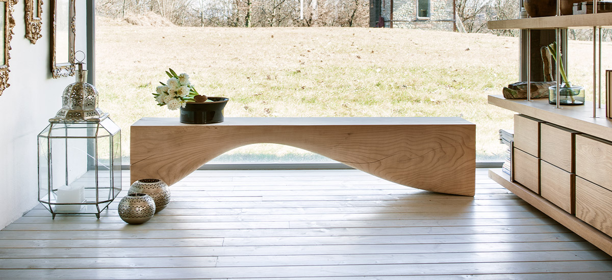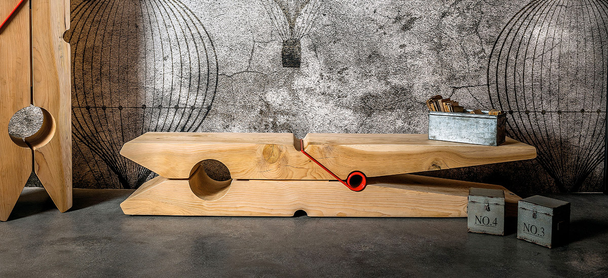 I modelli della collezione spaziano da forme squadrate a linee curve, con influenze artistiche che rendono questi arredi di pregio in legno adatti a qualsiasi ambiente. Tavolini, sgabelli, librerie, console, panche e poltrone diventano elementi d'arredo che uniscono funzionalità ed estetica, perfetti per chi cerca un arredamento di design dal forte impatto visivo ed emozionale.