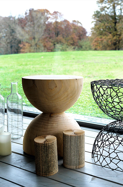 Questa collezione incarna perfettamente i valori di arredamento sostenibile, poiché utilizza legno di recupero proveniente da alberi caduti naturalmente o abbattuti per motivi di sicurezza da privati e municipalità, che sarebbe altrimenti stato destinato al macero. Il risultato è un'armonia perfetta tra design innovativo e rispetto per l'ambiente, senza alcun trattamento chimico che possa alterare le caratteristiche del materiale.