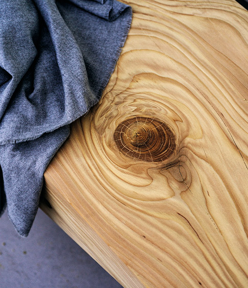 Il legno pregiato profumato di cedro si distingue per le sue venature uniche e la capacità di trasformarsi nel tempo. I tronchi non vengono essiccati, quindi eventuali crepe o movimenti del materiale sono il naturale risultato dell’assestamento del legno, segno distintivo della sua vitalità e autenticità, rendendo ogni pezzo unico e irripetibile.