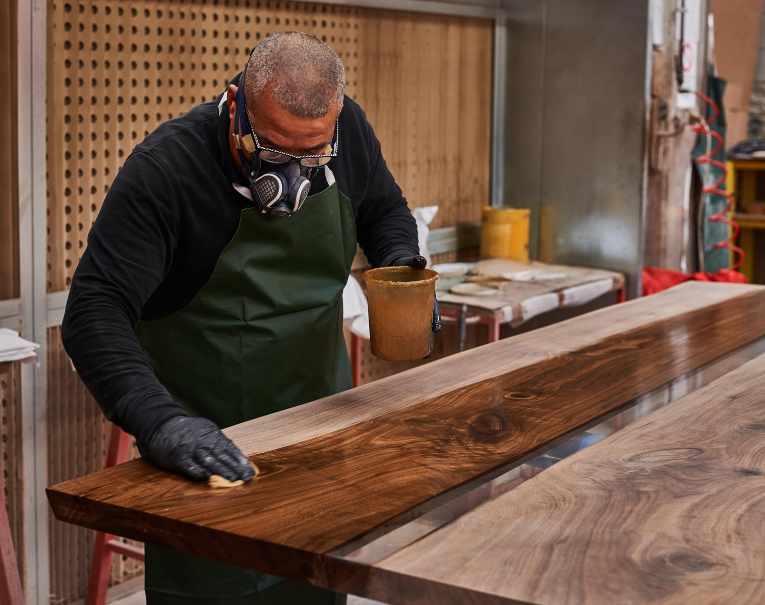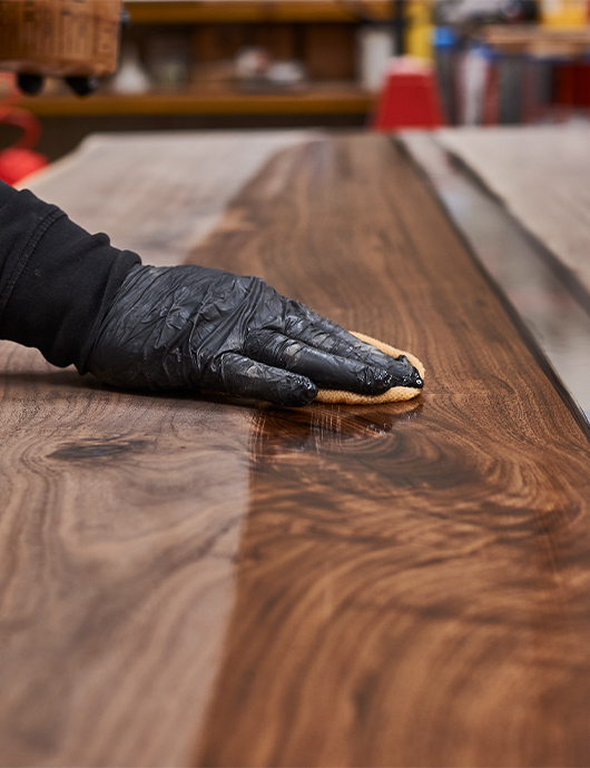 Ogni mobile Riva1920 è rifinito esclusivamente con finiture naturali a base di cera d’api e olio agli estratti di pino. Questi trattamenti non solo esaltano la bellezza intrinseca del legno, ma lo proteggono in modo naturale, mantenendone la traspirabilità e il calore al tatto.