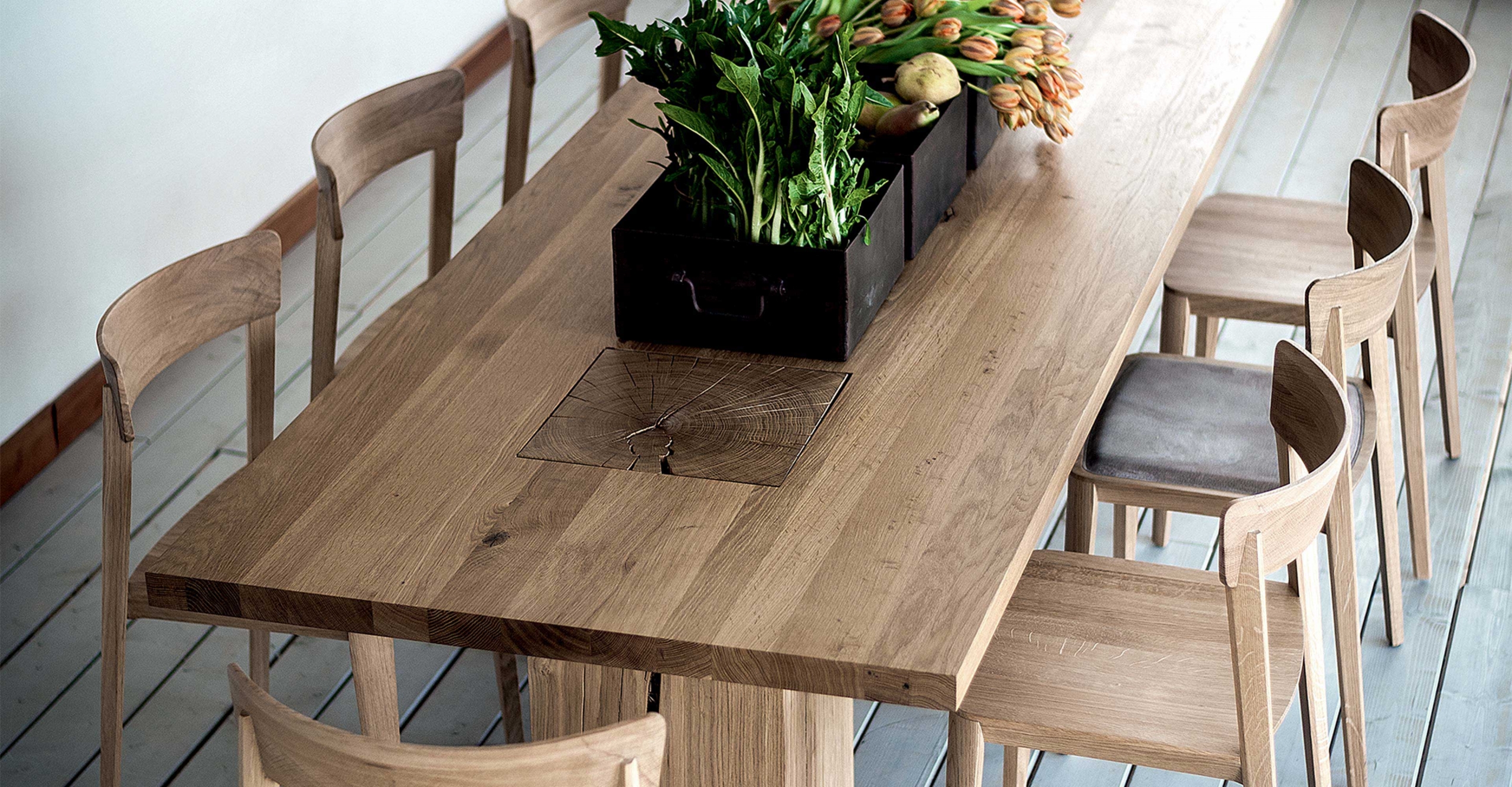 Flessibile, resistente e dal grande fascino, il rovere è uno dei legni più apprezzati nel mondo del design. La sua versatilità lo rende perfetto per arredi che sfidano il tempo, mantenendo la bellezza naturale delle sue venature. I tronchi di rovere utilizzati da Riva1920 provengono dalle foreste dell'Est Europa, gestite secondo principi di sostenibilità che assicurano un equilibrio tra crescita e abbattimento, prevenendo il disboscamento.