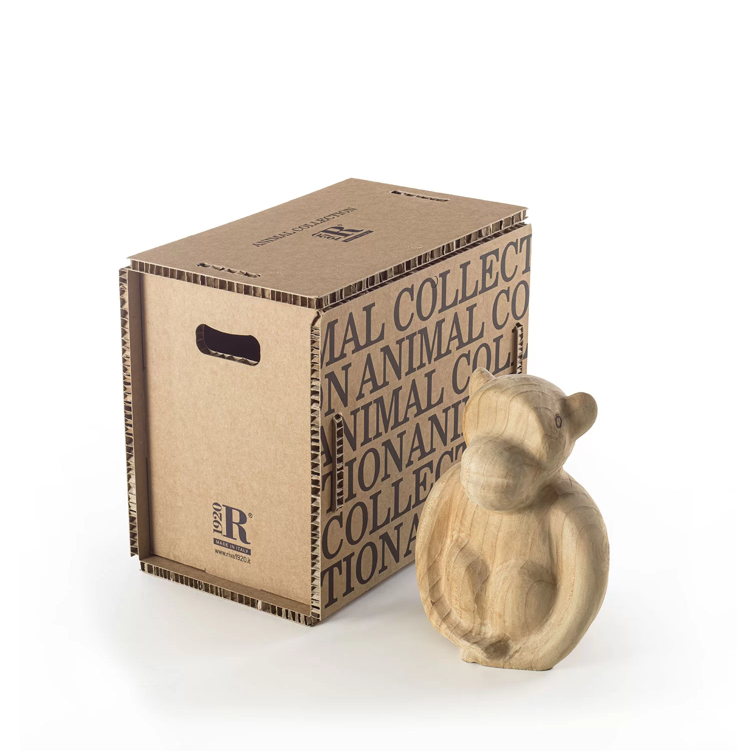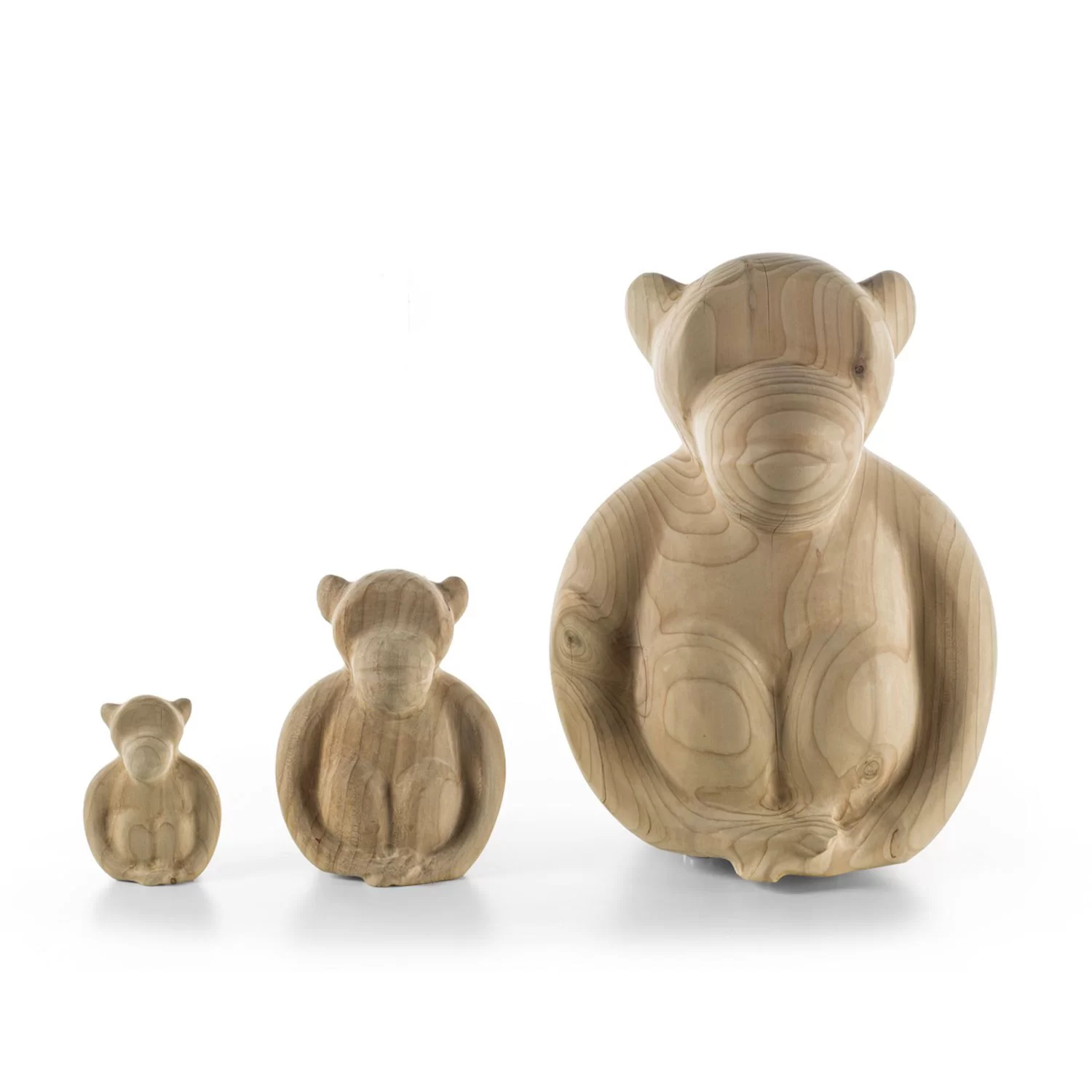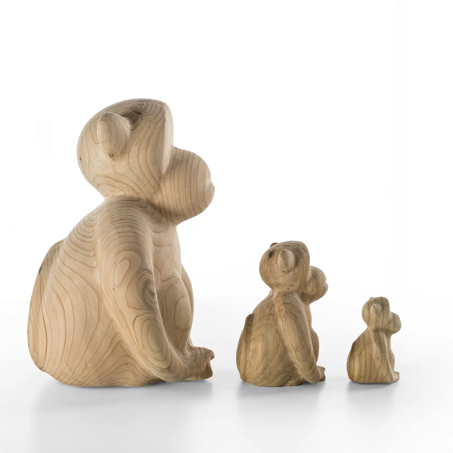 Complemento di arredo in legno massello di cedro profumato lavorato da un blocco unico, il cui design scultoreo si ispira ad una simpatica scimmia.  Disponibile in tre dimensioni: big, medium e small.