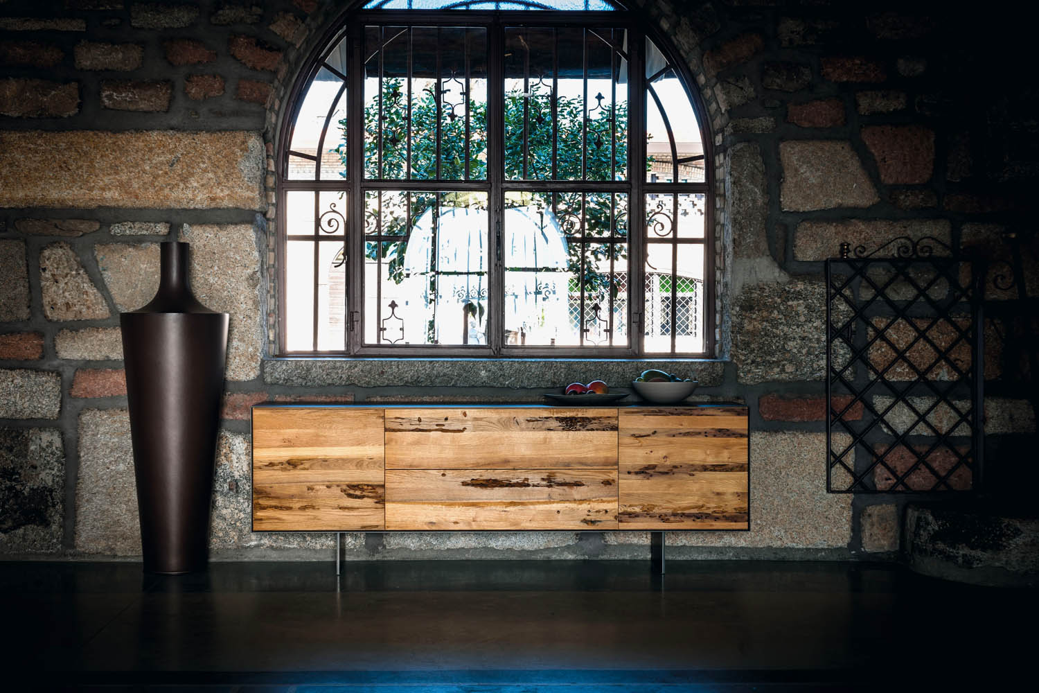 Tutti i campioni, così come le foto dei vari materiali e delle finiture disponibili, sono da considerarsi puramente indicativi. Eventuali difformità di colore e caratteristiche dei materiali usati per la produzione non potranno essere considerate motivo di contestazione, poiché legate alle loro caratteristiche naturali (es. venatura e nodi del legno, conformità del ferro o di pelli e tessuti etc.) o all’artigianalità della lavorazione (es. laccatura su ferro etc.).