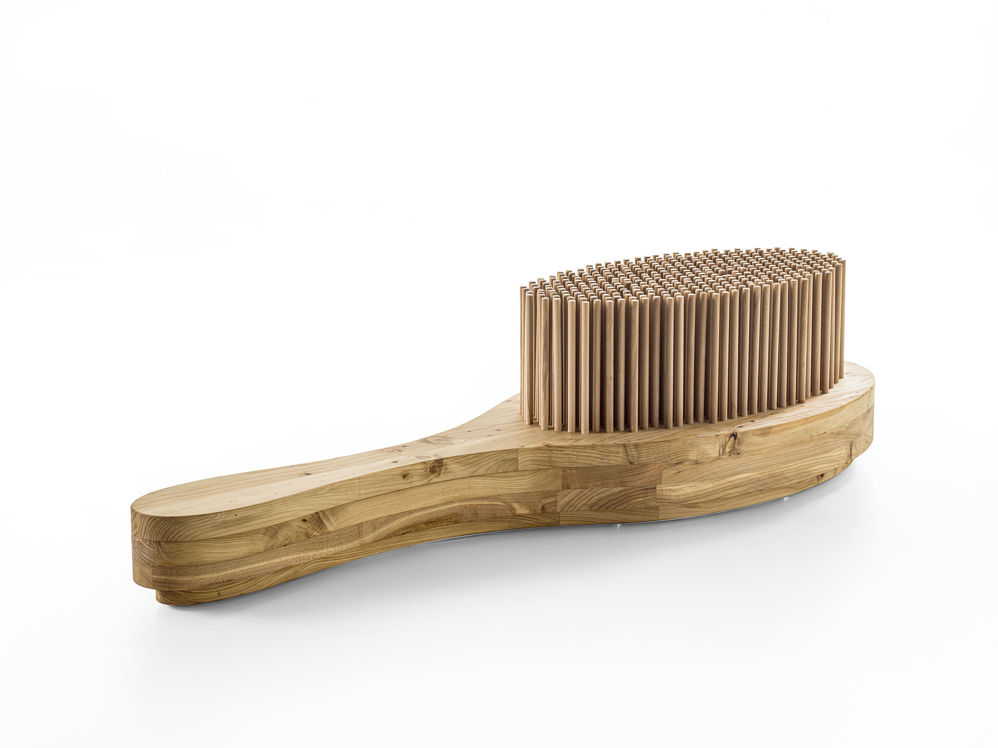 Panca in legno massello di cedro profumato che prende il nome e la forma dall’iconica spazzola Aldo Coppola, riproducendone fedelmente il profilo e trasformandolo in un oggetto d’arredo scultoreo. Il dettaglio più sorprendente? Le setole, reinventate in legno massello, che donano alla panca un aspetto unico e immediatamente riconoscibile. La seduta ergonomica offre il massimo del comfort, rendendola perfetta sia per un momento di pausa che come pezzo statement in qualsiasi ambiente.