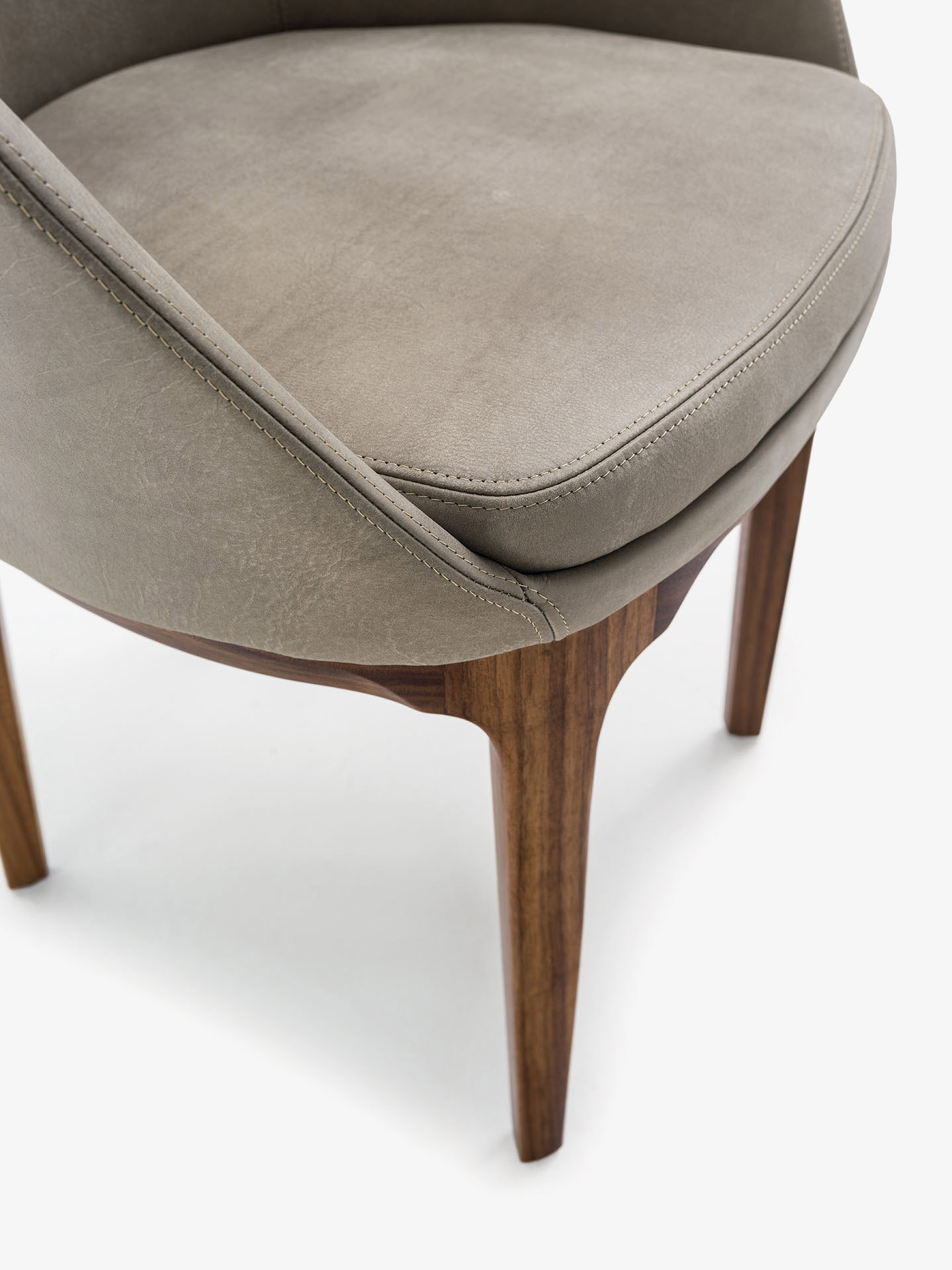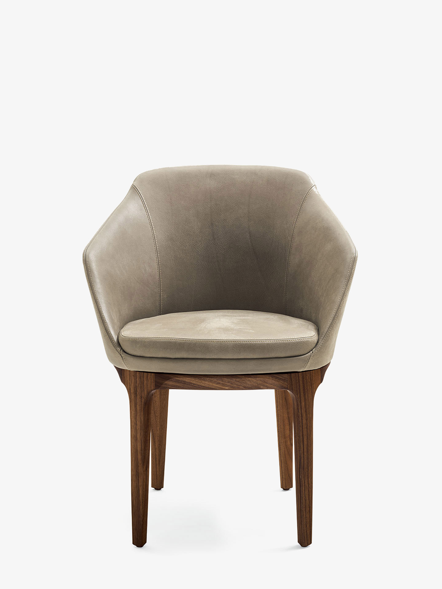 Poltroncina elegante ed avvolgente, con scocca in poliuretano espanso in linea di continuità tra schienale e braccioli, dotata di morbido cuscino d’appoggio integrato nella seduta. Restyling delle gambe nella versione in legno.