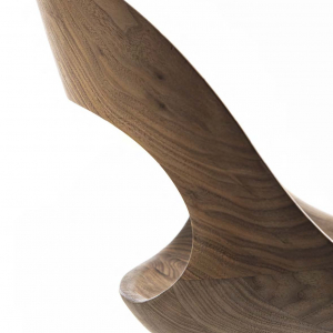 Sedia dalla seduta in legno massello in linea di continuità tra schienale e braccioli, disponibile anche in versione girevole.