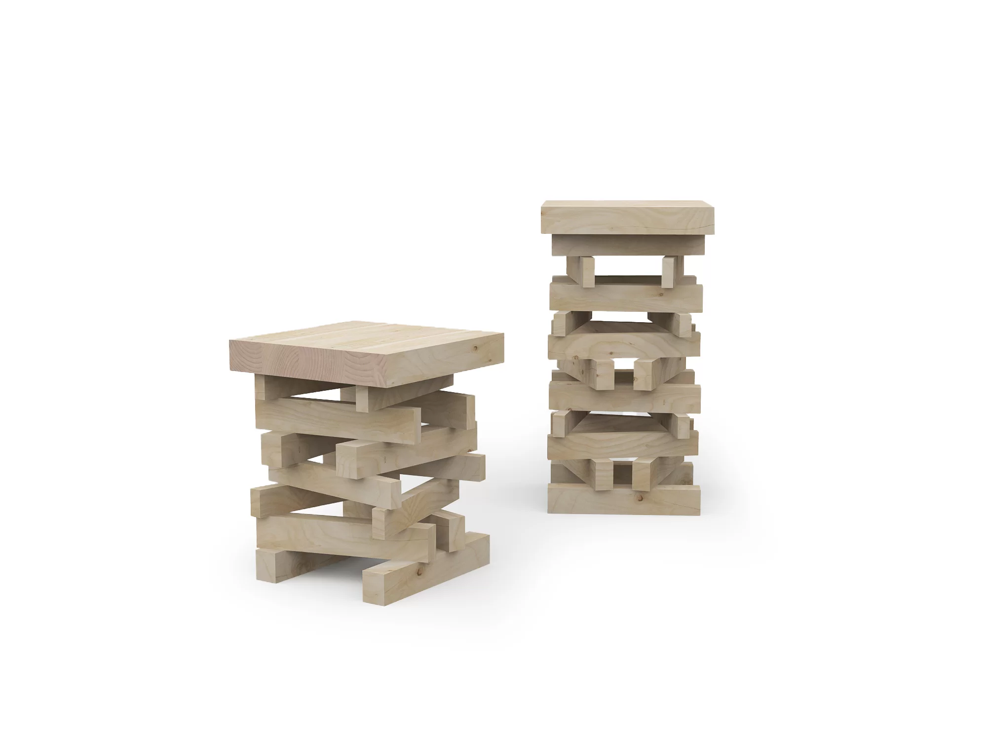 Sgabello interamente realizzato in legno massello caratterizzato da listelli sovrapposti. Per utilizzo outdoor disponibile solo in A7 cedro.