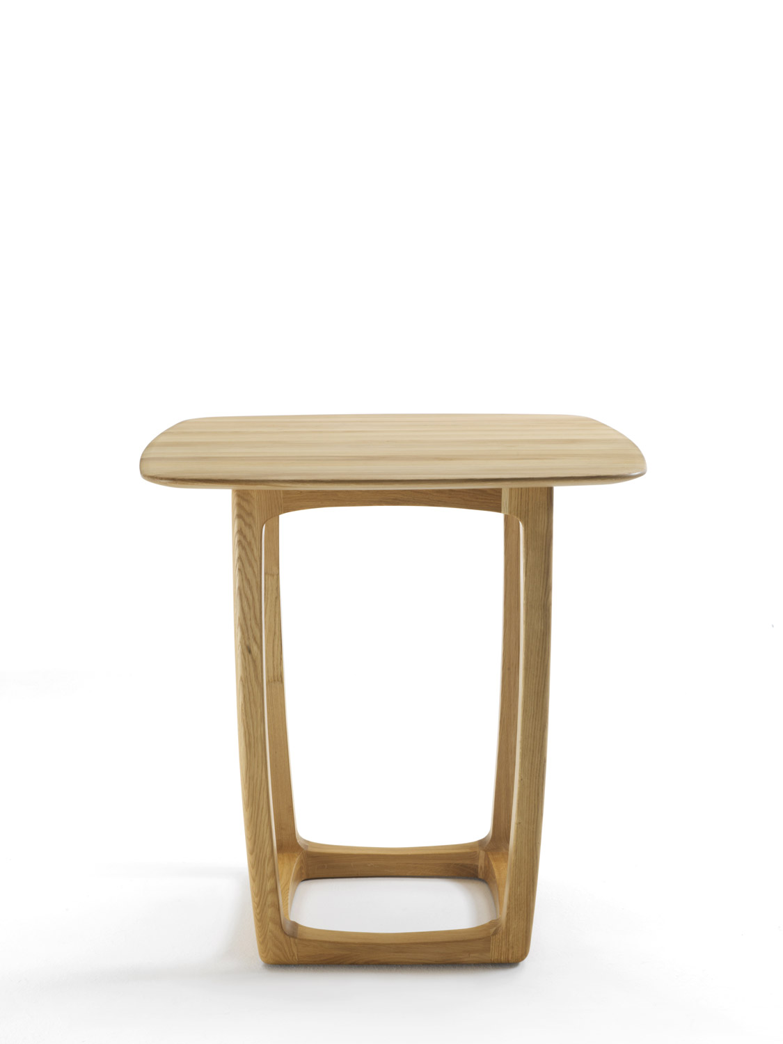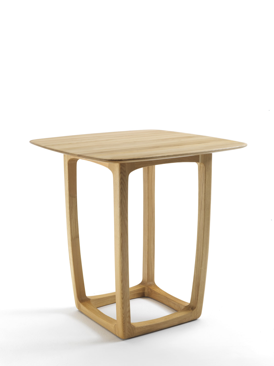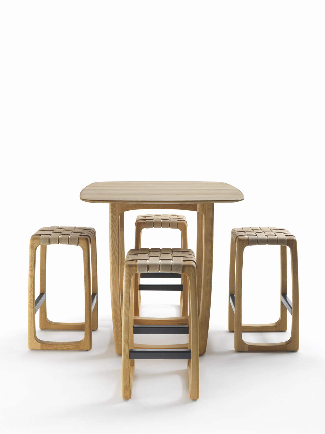 Tavolo da bar composto da struttura in legno massello completamente tornita, assemblata e levigata a mano, con base d’appoggio squadrata abbinata ad un top in legno con lati smussati e sporgenti.