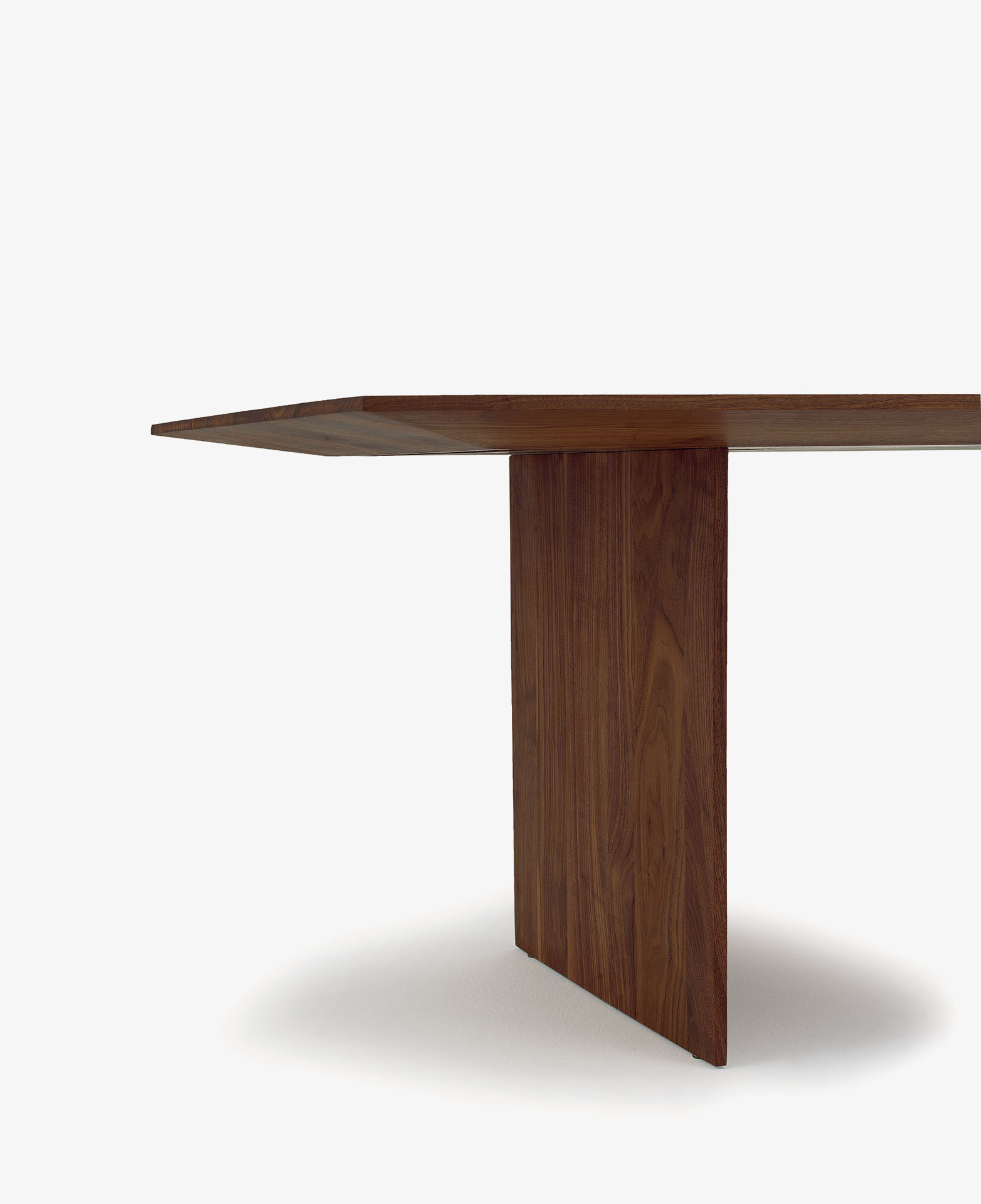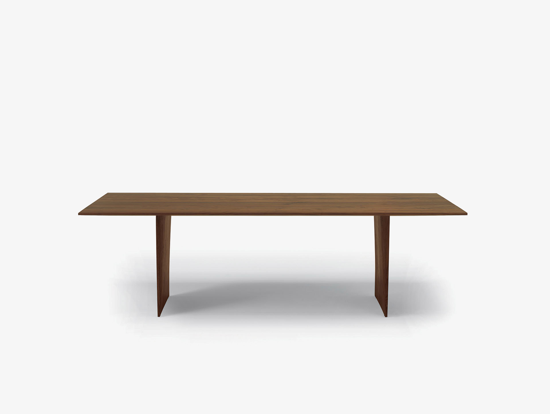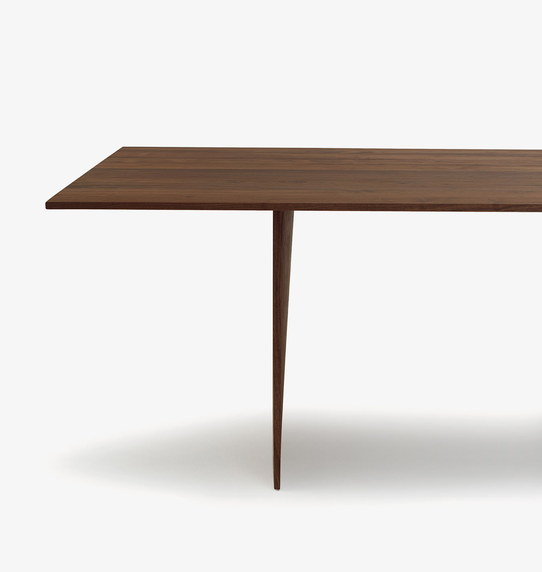 Tavolo interamente realizzato in legno massello a liste incollate con bordi rastremati che si caratterizza per gli spessori assottigliati del top e delle gambe. Versione con top di forma rettangolare.