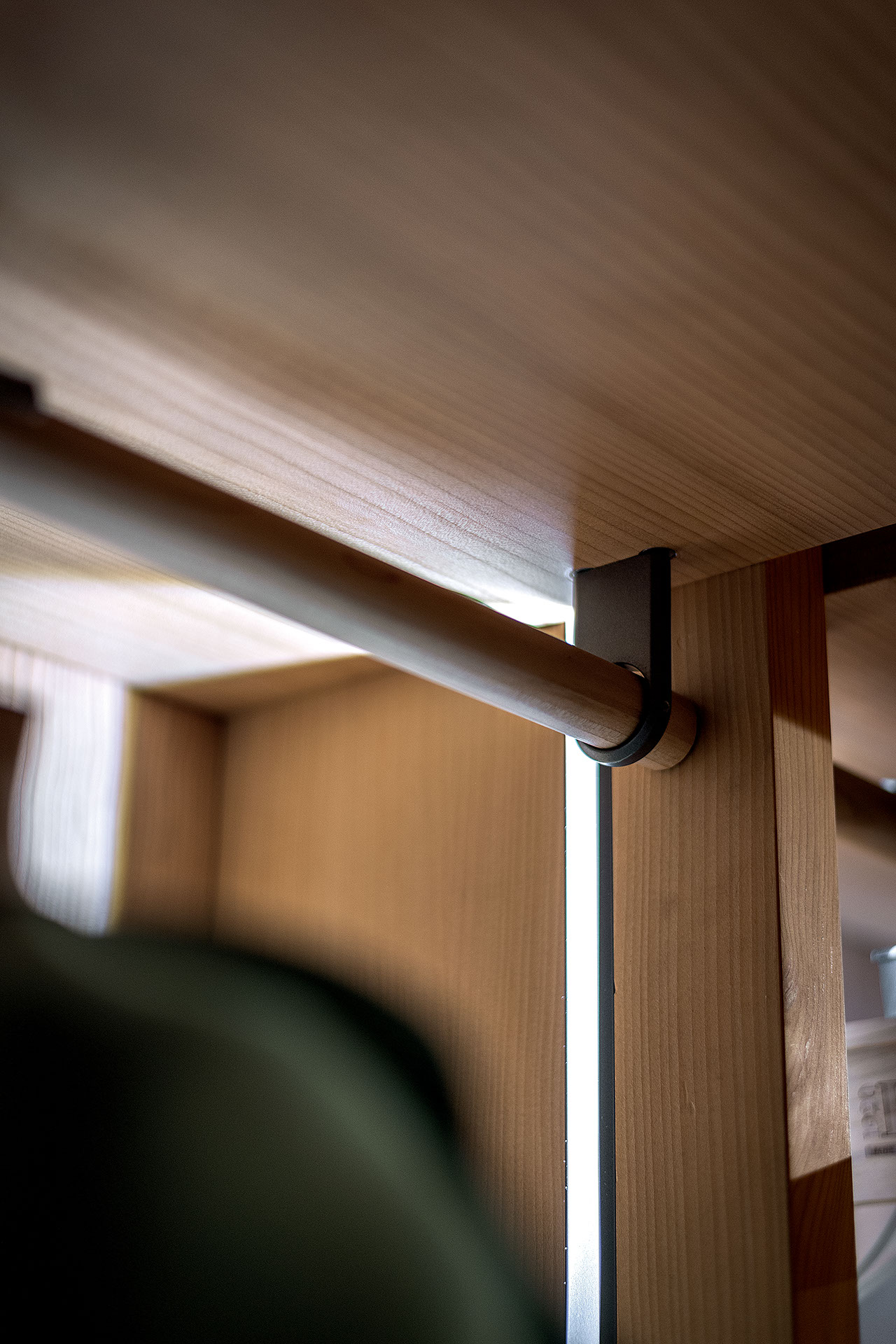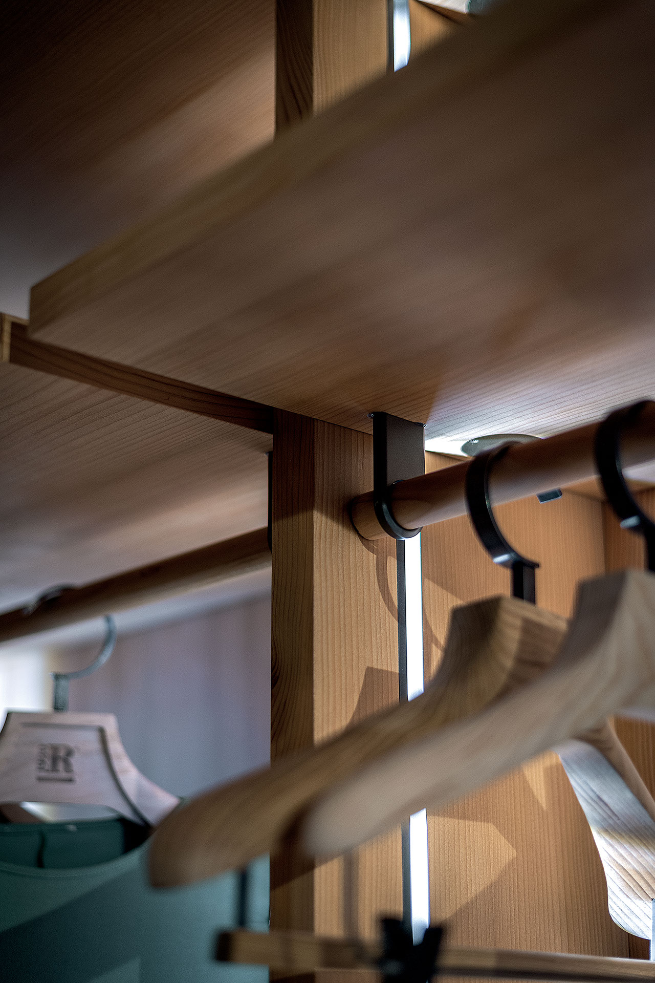Cabina armadio in listellare e legno massello, propone un’organizzazione funzionale e componibile dei vari elementi sulla base delle esigenze contenitive e delle dimensioni richieste. Personalizzabile con l’inserimento di appendiabiti, ripiani, cassettiere in legno massello con tradizionale incastro a coda di rondine e accessori vari. Ideale con interni in legno di cedro profumato, naturale rimedio contro le tarme. Illuminazione a LED disponibile su richiesta.