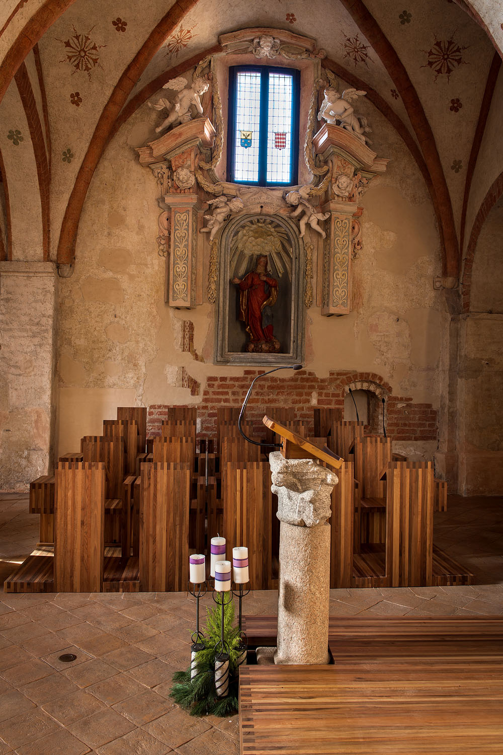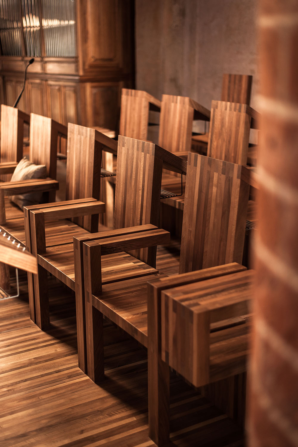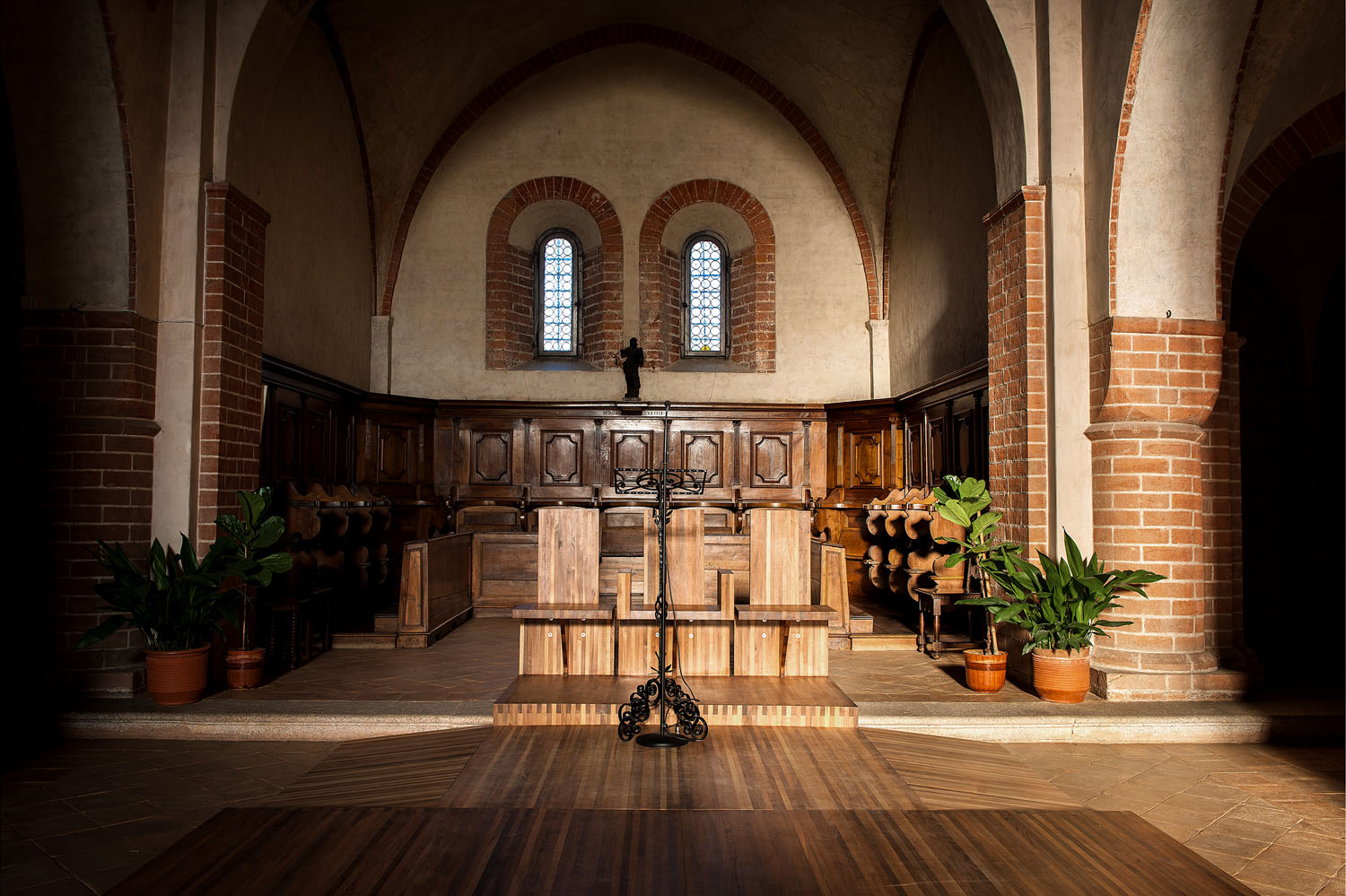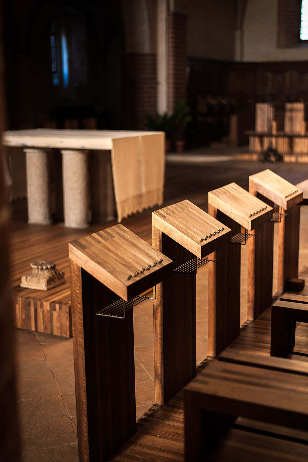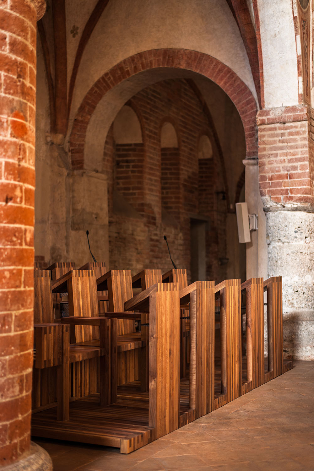 Riva1920 realizza una serie di sedute in legno massello di noce rifinite con olii naturali per il coro della Comunità Monastica Benedettina dell'Abbazia dei SS. Pietro e Paolo in Viboldone, frazione della città di San Giuliano Milanese, in provincia di Milano.