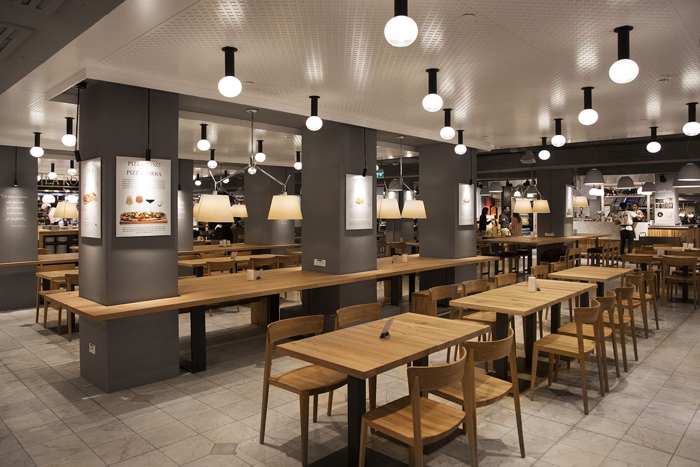Eataly arriva a Copenhagen: il primo negozio del Nord Europa, inaugurato il 17 novembre 2016, è ospitato presso ILLUM, il famoso centro commerciale situato nel cuore della città danese. All’interno dello spazio è possibile mangiare, comprare e imparare sempre nel rispetto della tradizione italiana. Si tratta di 2000 m² dedicati a 3 ristoranti, 3 bars e all’esposizione di oltre 3.000 prodotti italiani. Riva1920 ha fornito arredi in cedro, rovere e legno millenario di Kauri che hanno saputo rendere ancora più straordinario e suggestivo l’allestimento del punto vendita. Si tratta dell’incontro di due eccellenze suggellato dalla condivisione degli stessi ideali: rispetto delle traduzioni, made in Italy, cura per i dettagli e produzione d’eccellenza, valori che rendono grande il nostro paese.