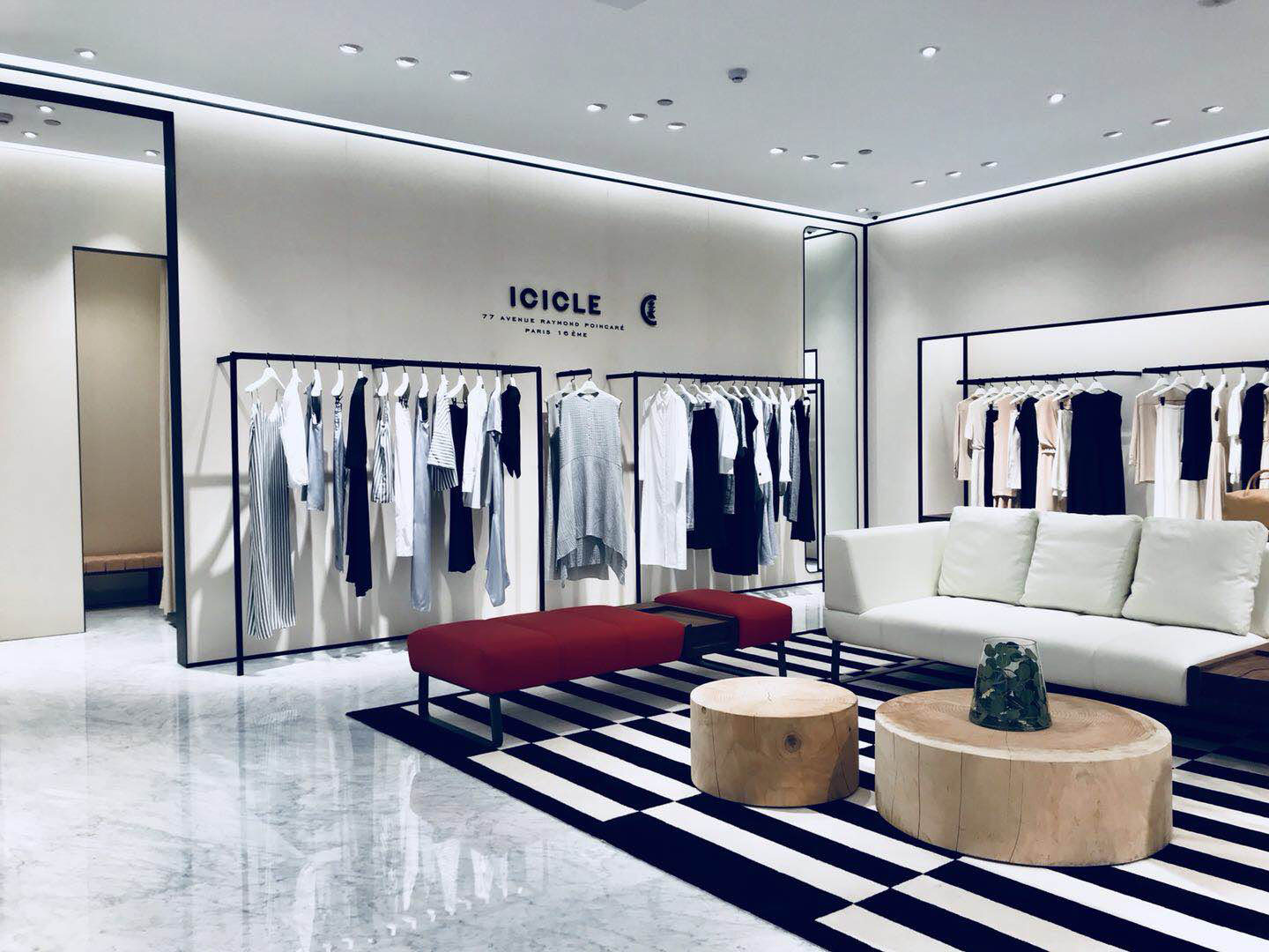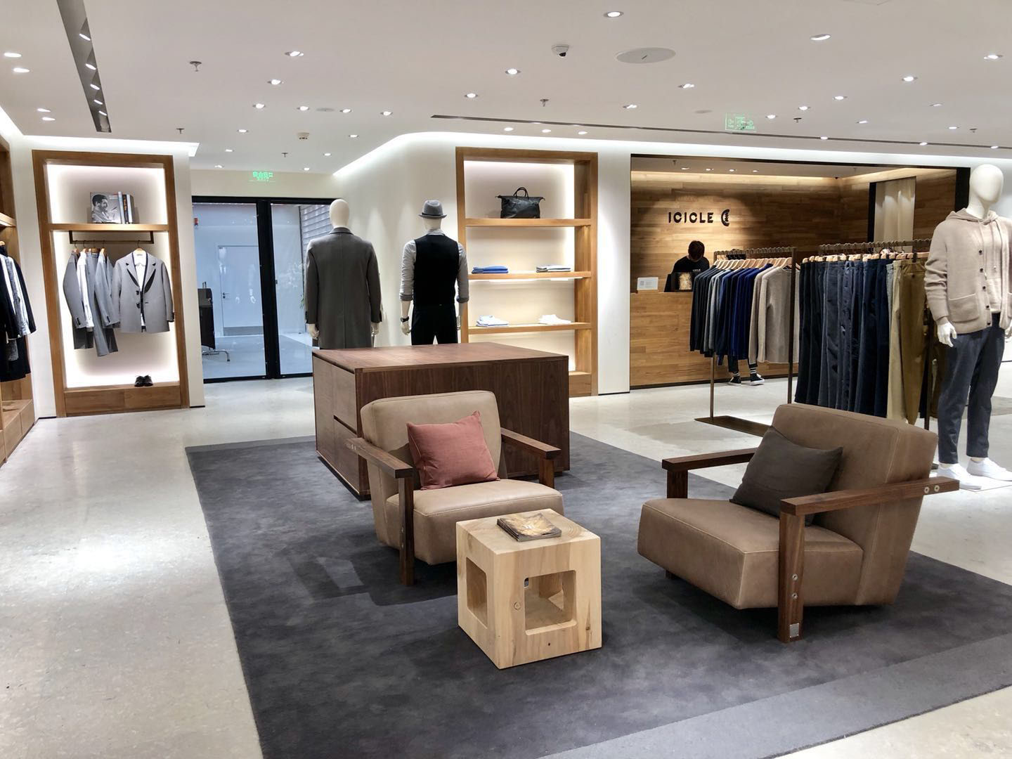 Il prestigioso punto vendita dello Shanghai Business Park oltre ad ospitare la collezione moda targata Icicle, dedica ampio spazio a Riva1920 attraverso i pezzi più rappresentativi. Il concept store si propone come punto d'incontro tra il mondo del fashion e quello del design. Un sodalizio, quello tra Icicle e Riva1920, che va oltre le logiche progettuali e funzionali, ma che vuole enfatizzare una collaborazione a 360° dove i due mondi si fondono insieme all'insegna della celebrazione del mondo naturale tanto caro alle due aziende. Questa continuità d'azione e di pensiero verso il tema della sostenibilità vede gli arredi Riva1920, realizzati in legno massello proveniente da tagli selezionati e programmati e rifinito solo con olii e cere naturali, ad essere protagonisti insieme ai capi moda dai filati naturali e di grande pregio a marchio Icicle anche all'interno del punto vendita di Pechino.